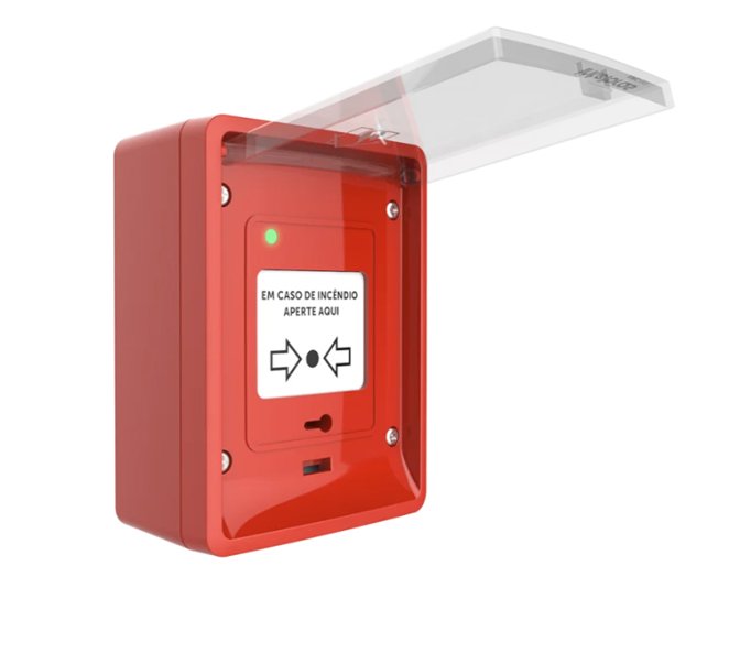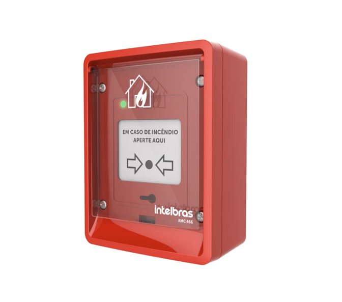 O acionador manual endereçável AMC 466 pode ser instalado em ambientes externos, pois possui grau de proteção IP66.